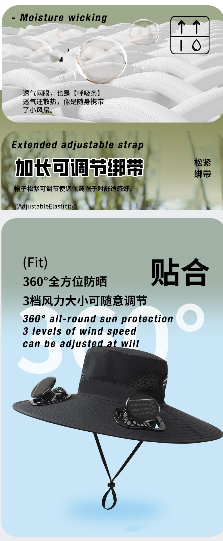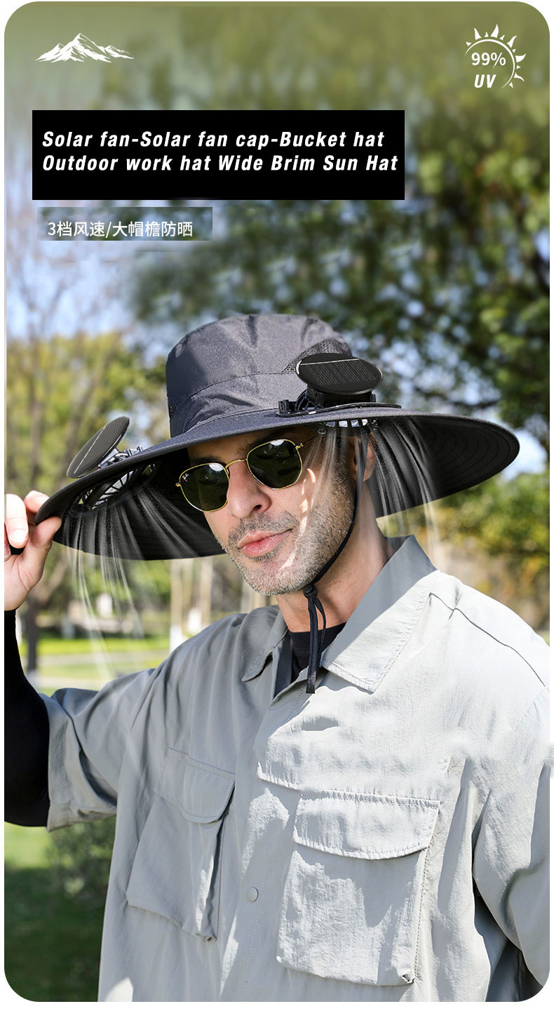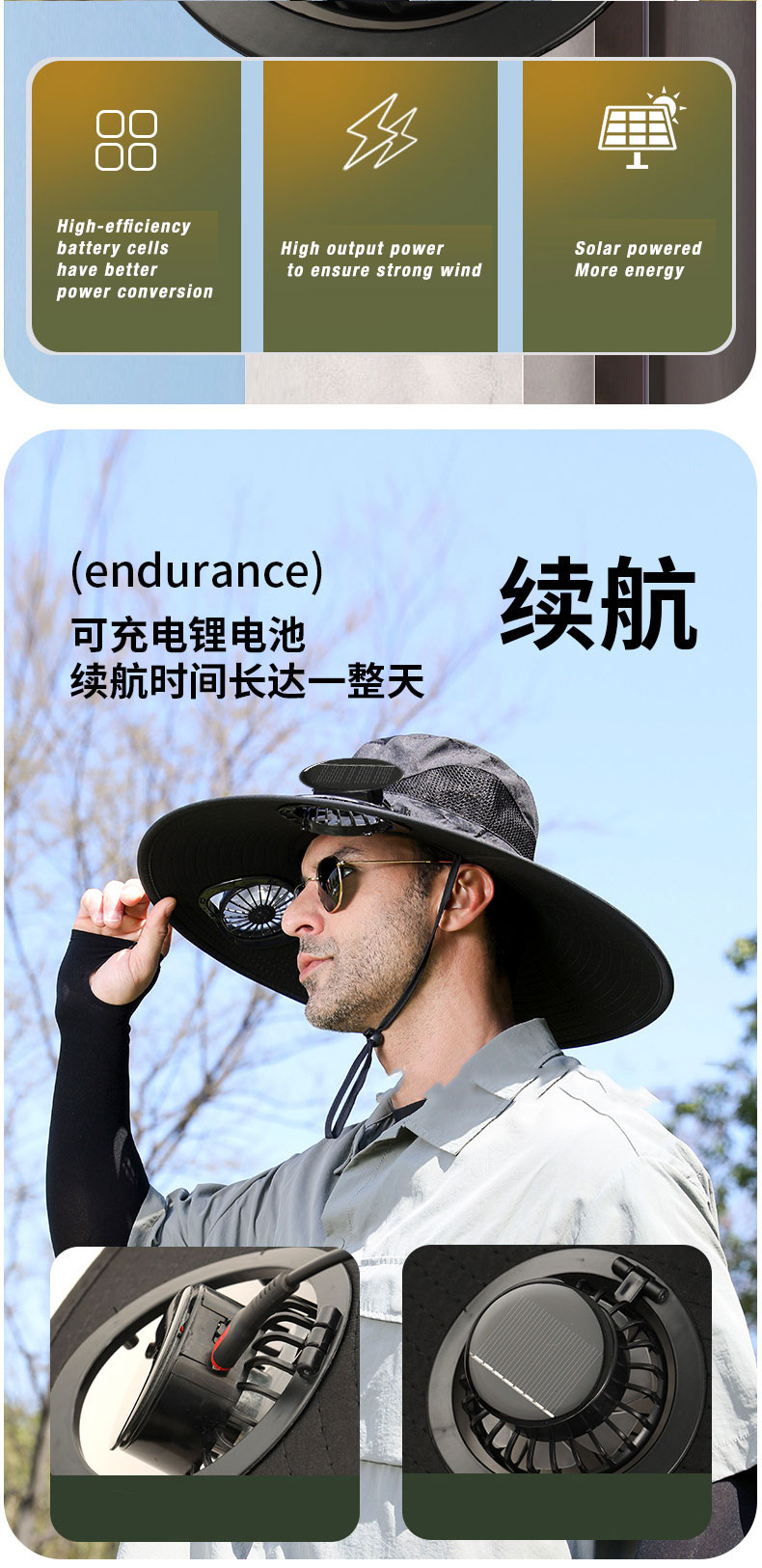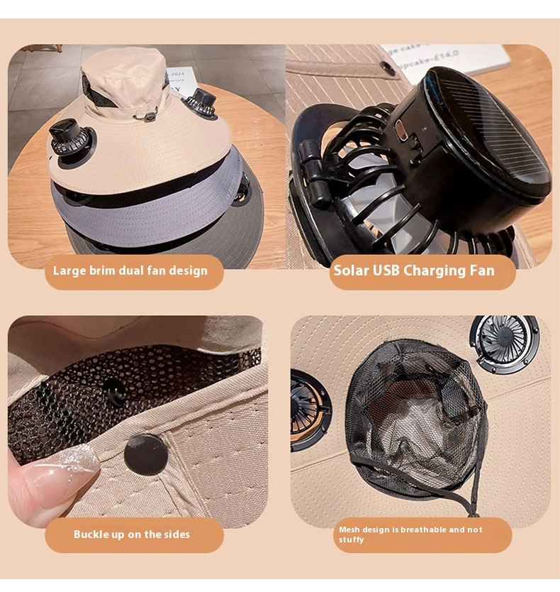Solar Fan Hat Usb Rechargeable Fan UV Protection