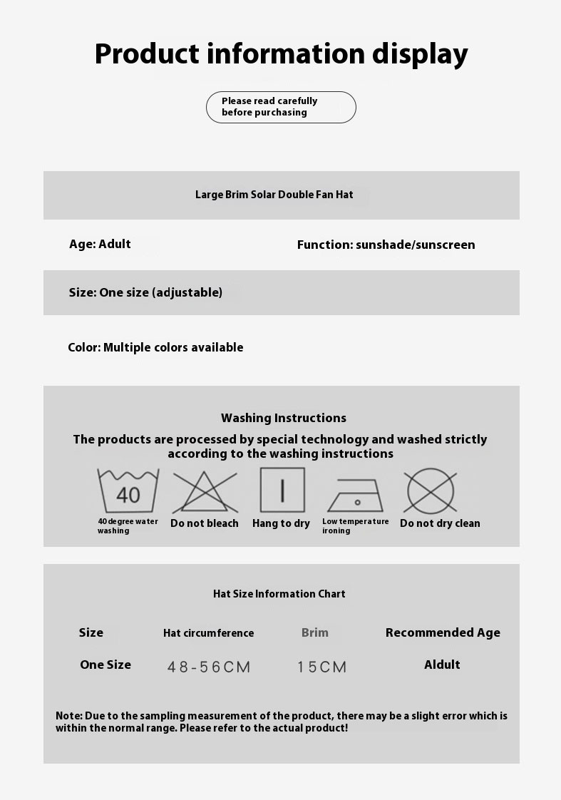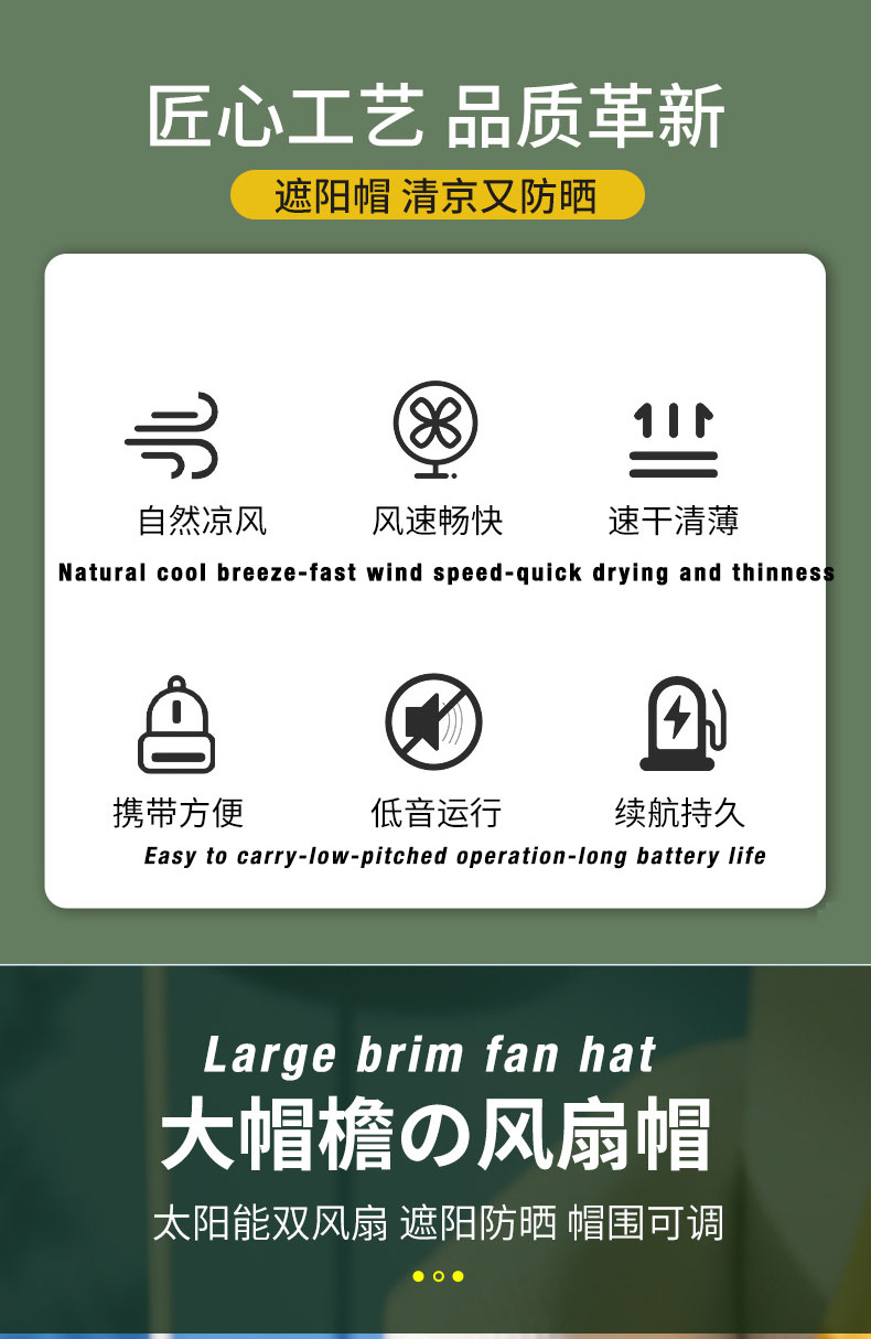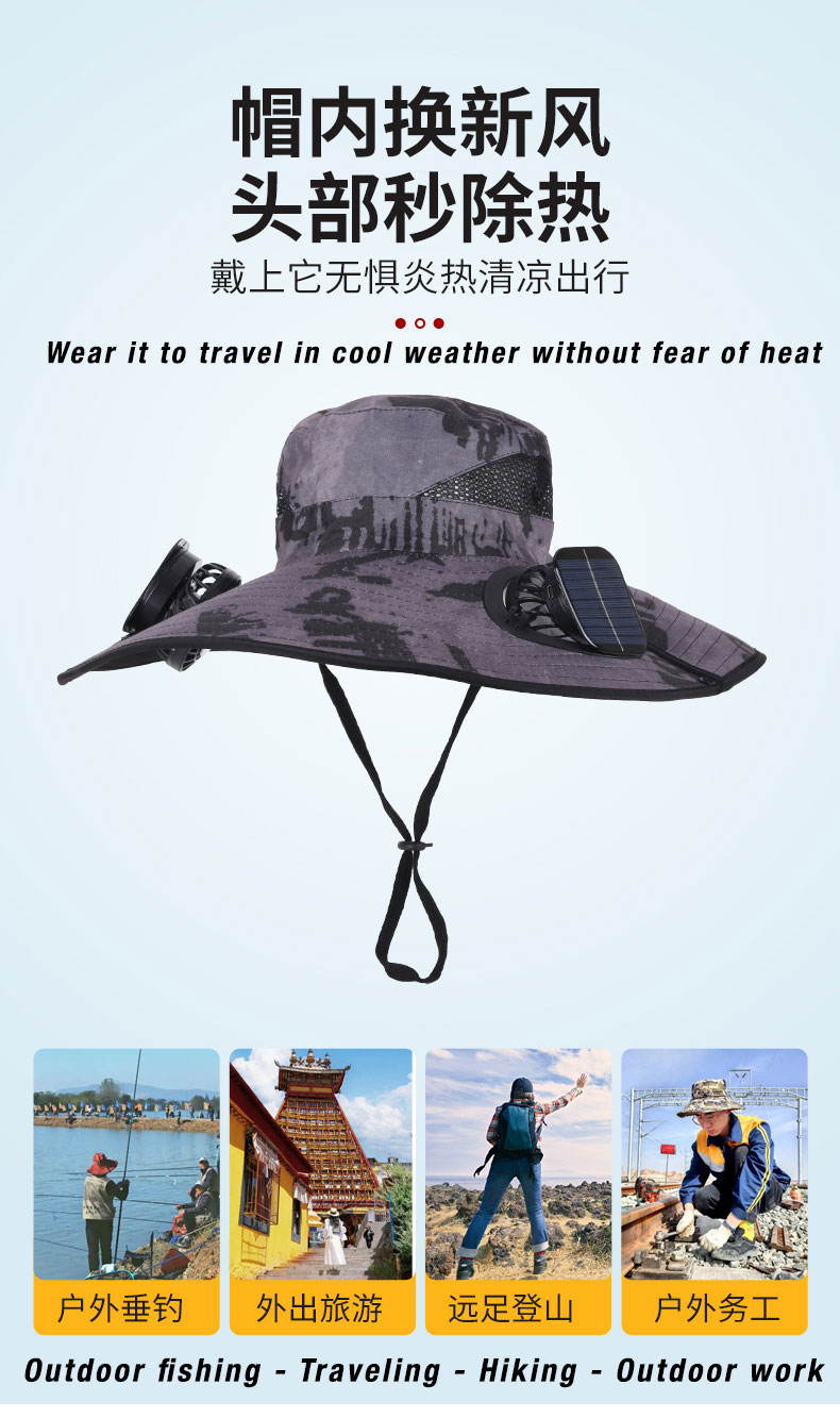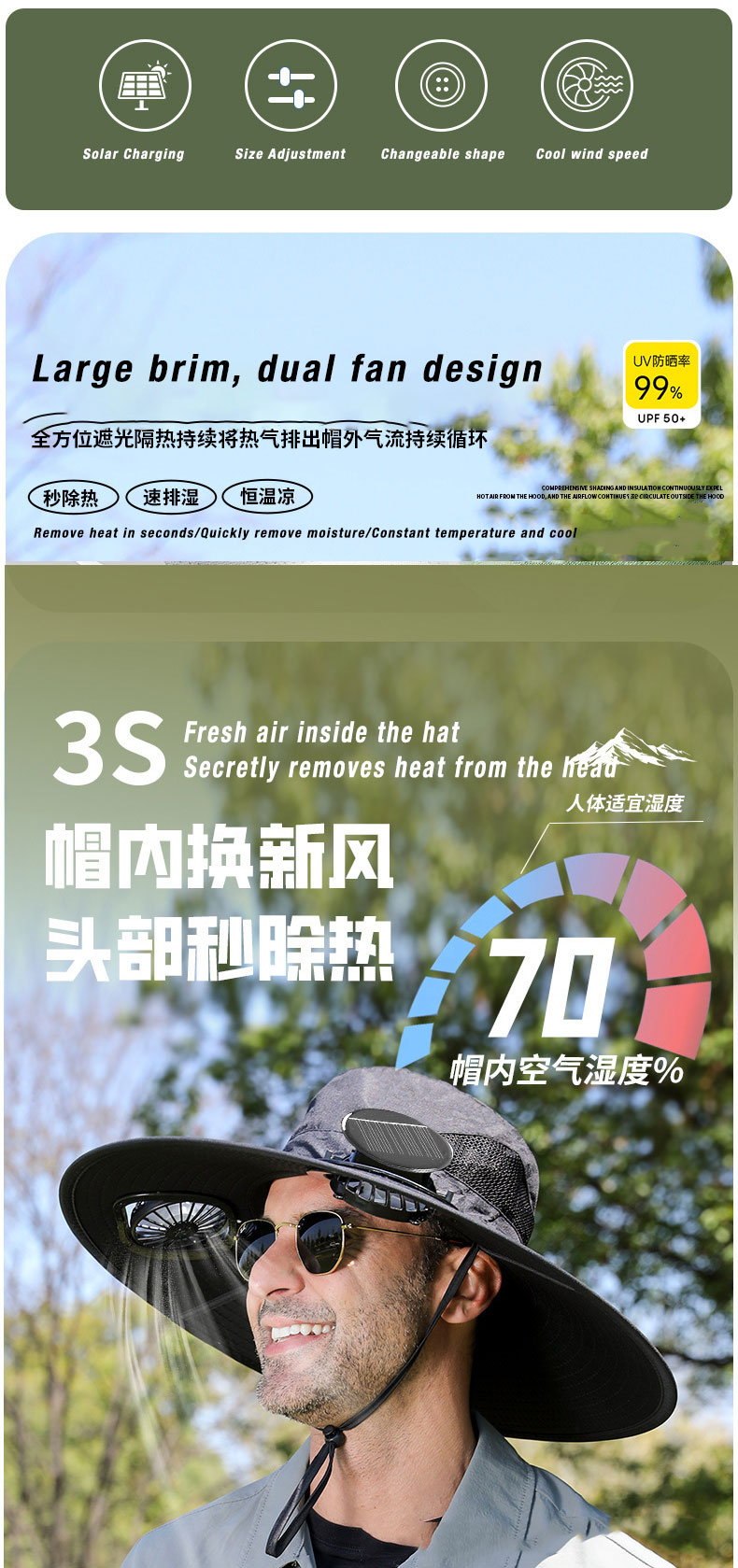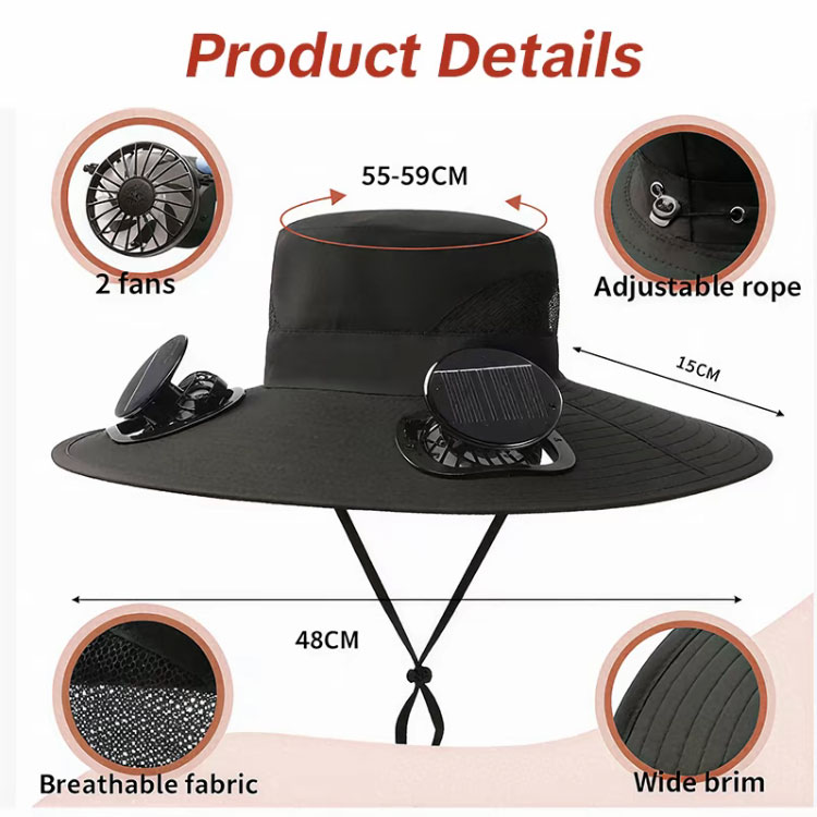Solar Fan Hat Usb Rechargeable Fan UV Protection